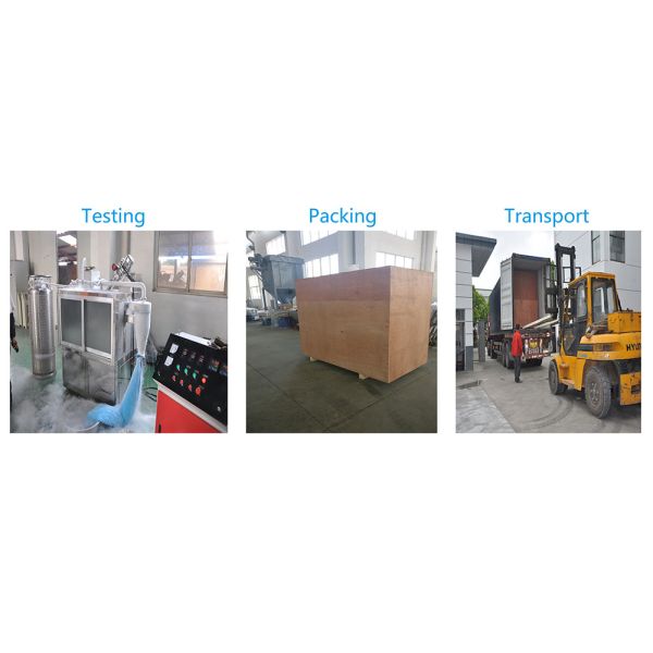 The whole machine consists of pre-cold storage, feeding screw, host, feeding fan, cyclone separator, pipe, electric control cabinet, liquid nitrogen tank (self-matching), liquid nitrogen connection hose and other components.
